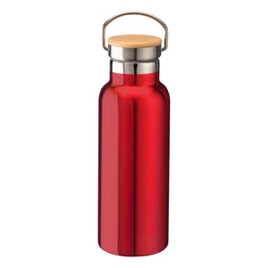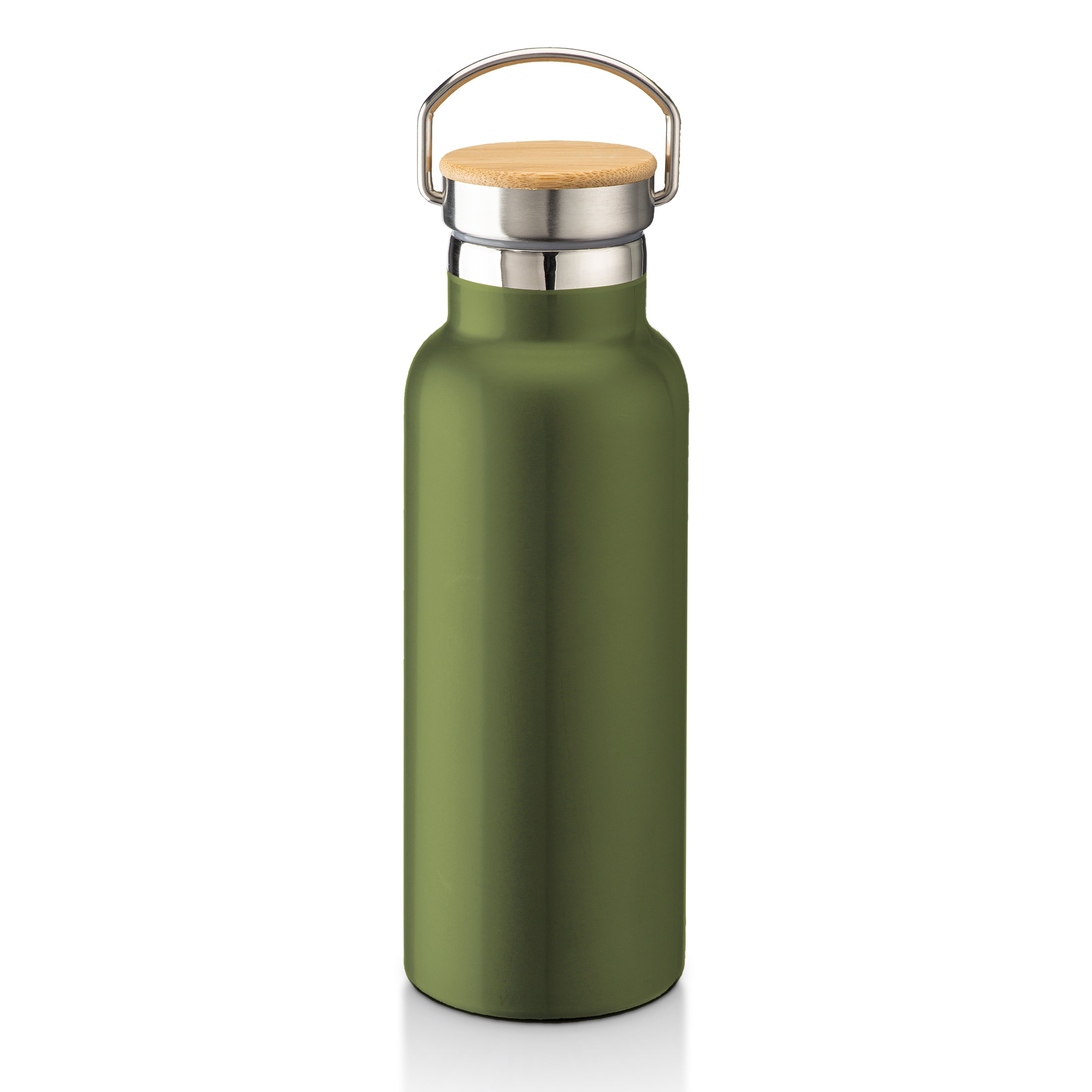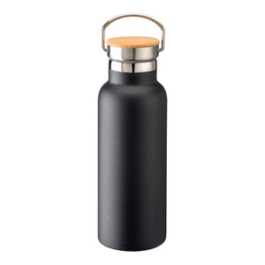 Thermos in acciaio inossidabile (500 ml) con doppia parete isolante e tappo in bambù.
