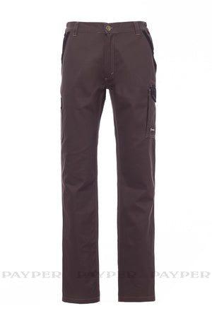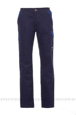 Pantalone unisex, mutistagione, elastici laterali e passanti in vita, chiusura con zip e bottone in metallo, due tasche anteriori a taglio classico e una tasca con zip, una tasca laterale LOCK SYSTEM, una doppia tasca lato sinistro porta metro, due tasche posteriori una aperta e una con patta e velcro. Inserti ed impuntare a contrasto, bande reflex su tasca posteriore, cucitura tripla interno gamba.