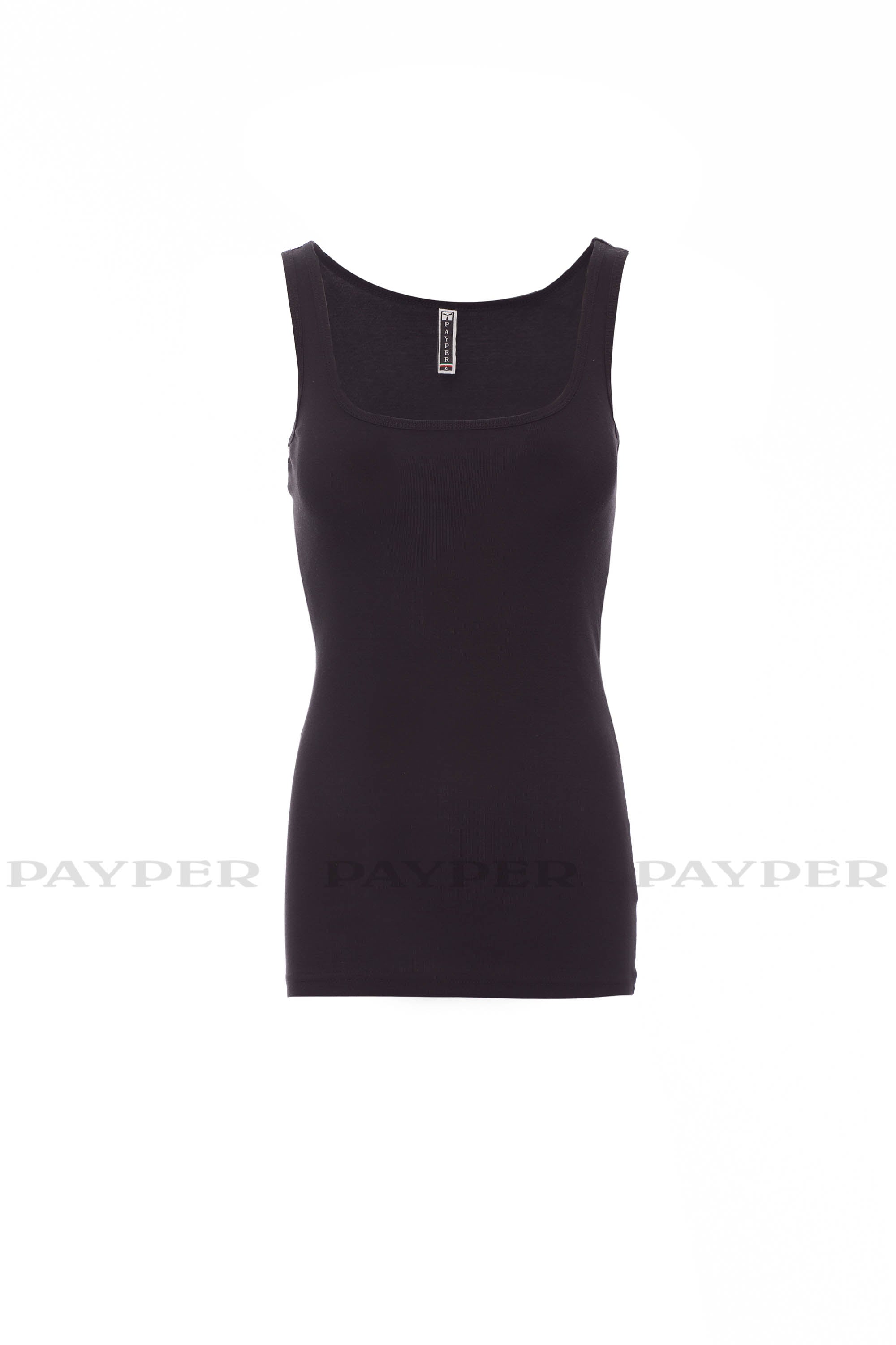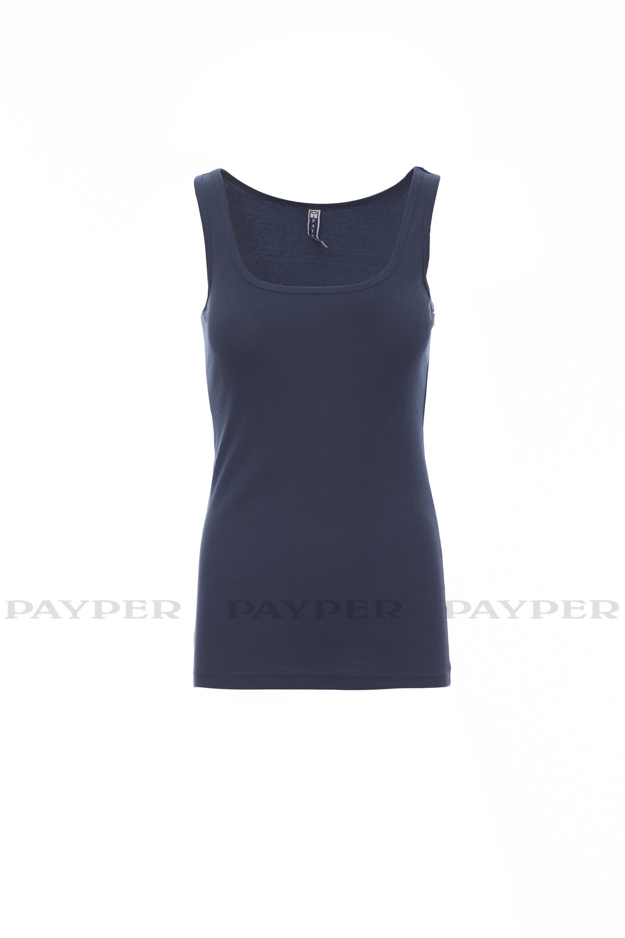 Canotta sfiancata da donna con girocollo ampio, colletto e bordo manica da 1 cm.