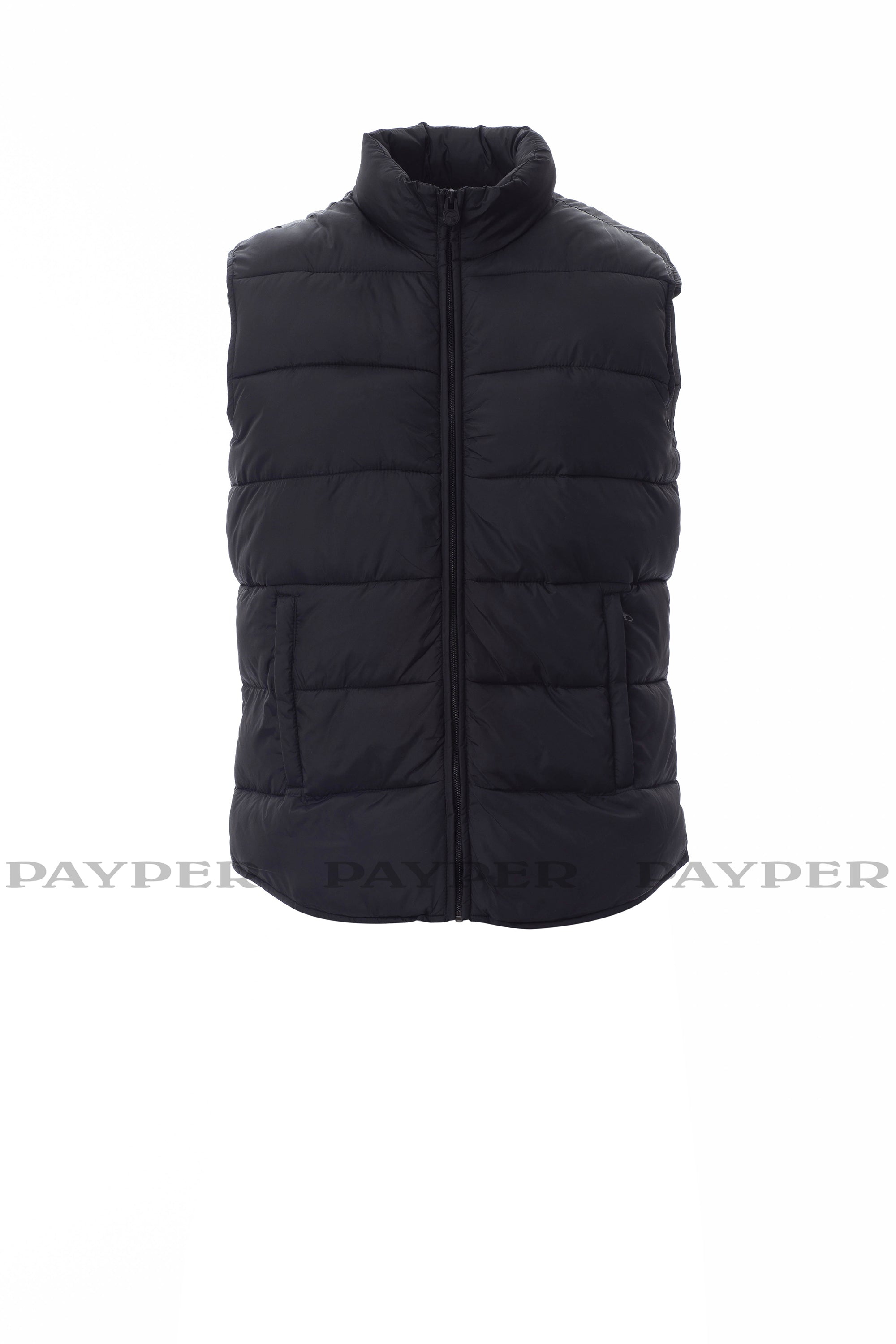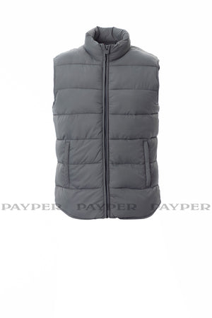 Gilet con imbottitura a fibre libere (120g/m²), da uomo, interno a contrasto. Chiusura tramite zip in plastica coperta con cursore in metallo. Due tasche esterne con zip coperte.