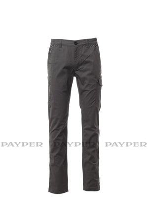 Pantalone invernale con passanti ed elastico in vita, chiusura con zip e bottone. Due tasche anteriori a taglio classico, taschino porta monete, porta metro laterale dx, tasca laterale sx con patta di chiusura LOCK SYSTEM, due tasche posteriori di cui una con patta e velcro. Cuciture a triplo ago.