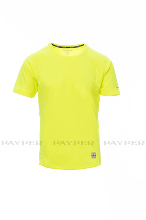 T-shirt da uomo tecnica-sportiva con manica raglan, doppia cucitura laterale per una migliore vestibilità, fondo sagomato e più lungo sul retro, inserto riflettente alle maniche e retro collo, nastratura del collo a contrasto, etichetta transfer.