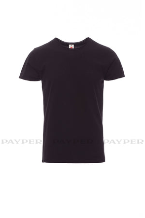 T-shirt manica corta con girocollo leggermente ampio, basso da 1.0 cm a taglio vivo, spalle con doppia cucitura interna, maniche corte a taglio vivo con fine risvolto, cuciture laterali.