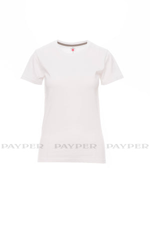 T-shirt girocollo manica corta sfiancata da donna, colletto in costina misto spandex da 1,5cm con cucitura ribattuta sul davanti, nastro di rinforzo da spalla a spalla in colore a contrasto visibile nel colletto, cuciture stretch, cucitura laterale.