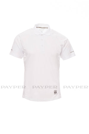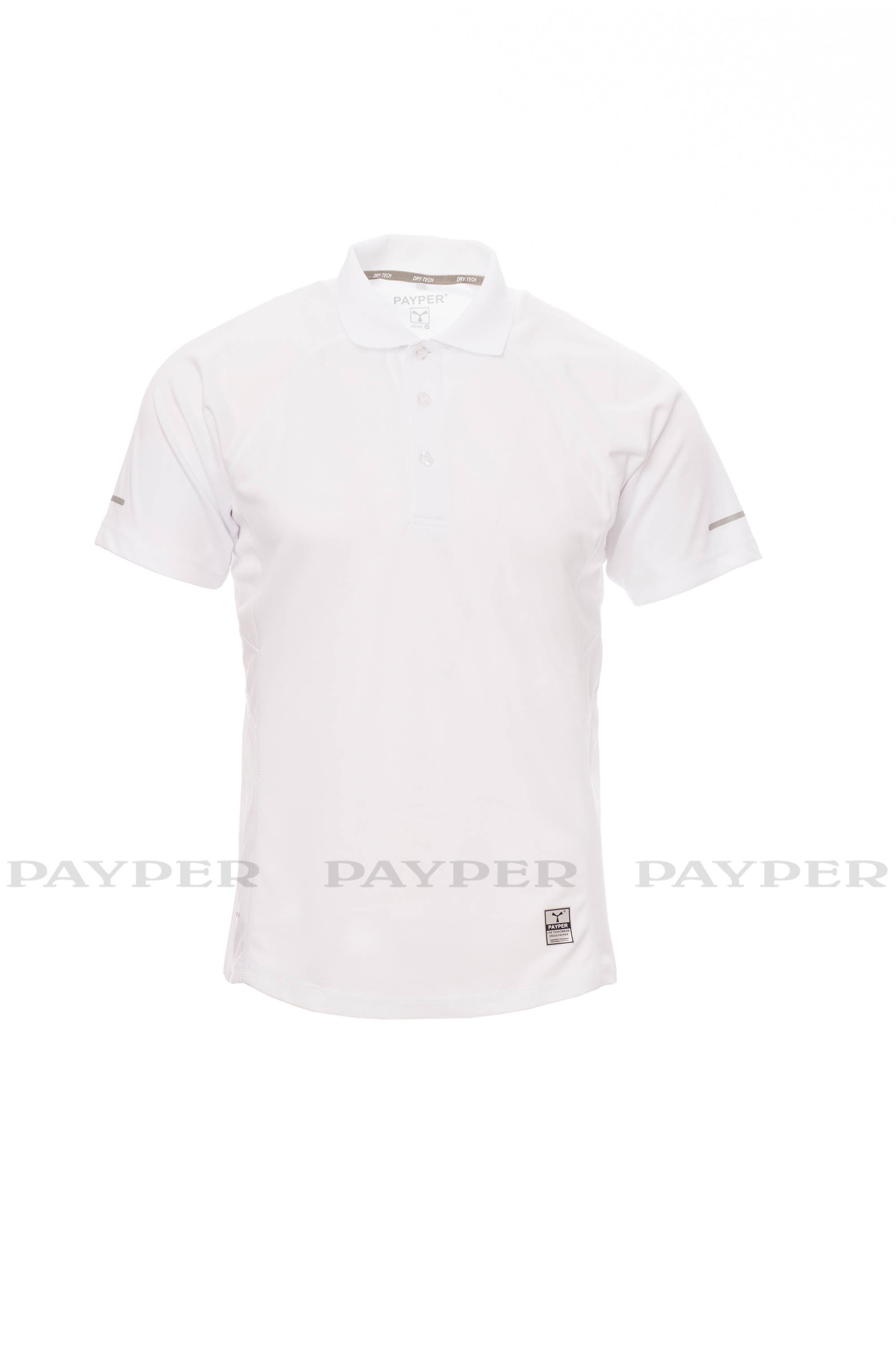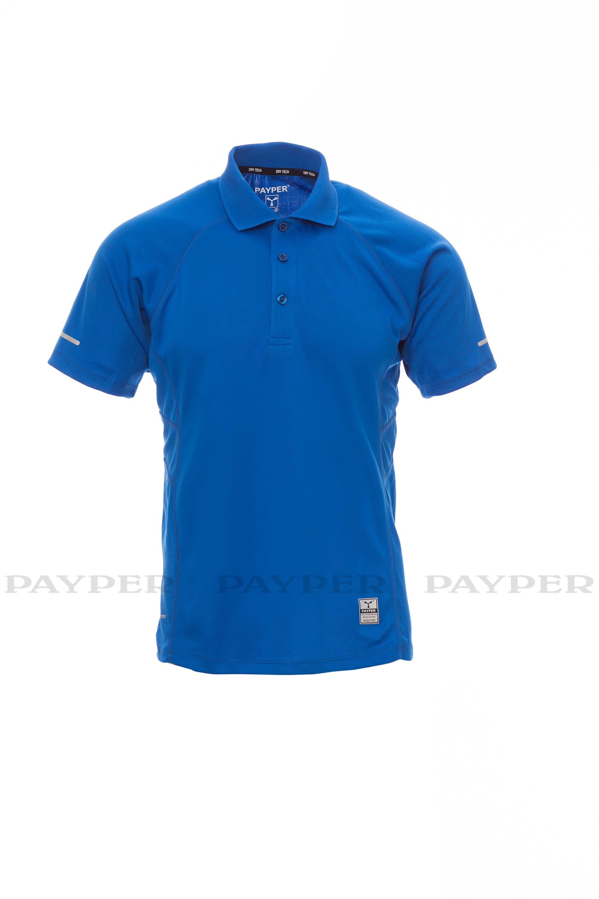 Polo da uomo tecnica-sportiva manica corta a tre bottoni in tinta, manica raglan, doppia cucitura laterale per una migliore vestibilità, fondo sagomato e più lungo sul retro, inserto riflettente alla maniche e retro collo, nastratura del collo a contrasto, etichetta transfer.