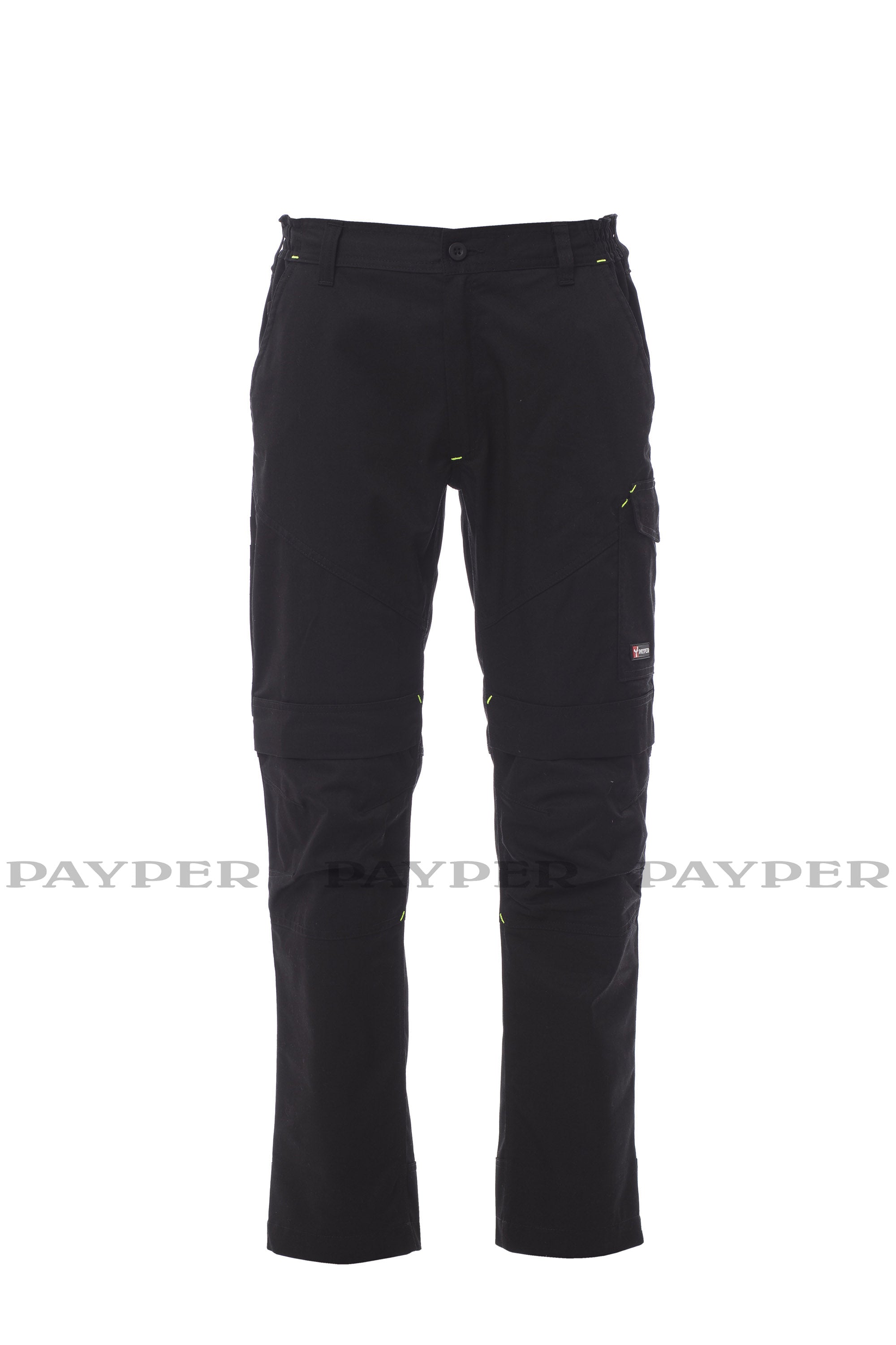 Pantalone unisex, multistagione con porta ginocchiere, elastici laterali e passanti in vita, chiusura con zip e bottone in plastica, due tasche anteriori a taglio classico, una tasca laterale LOCK SYSTEM, un porta metro e un porta smartphone, due tasche posteriori una aperta e una con patta e velcro, inserti ed impunture a contrasto, bande reflex su tasca posteriore, cuciture triple.